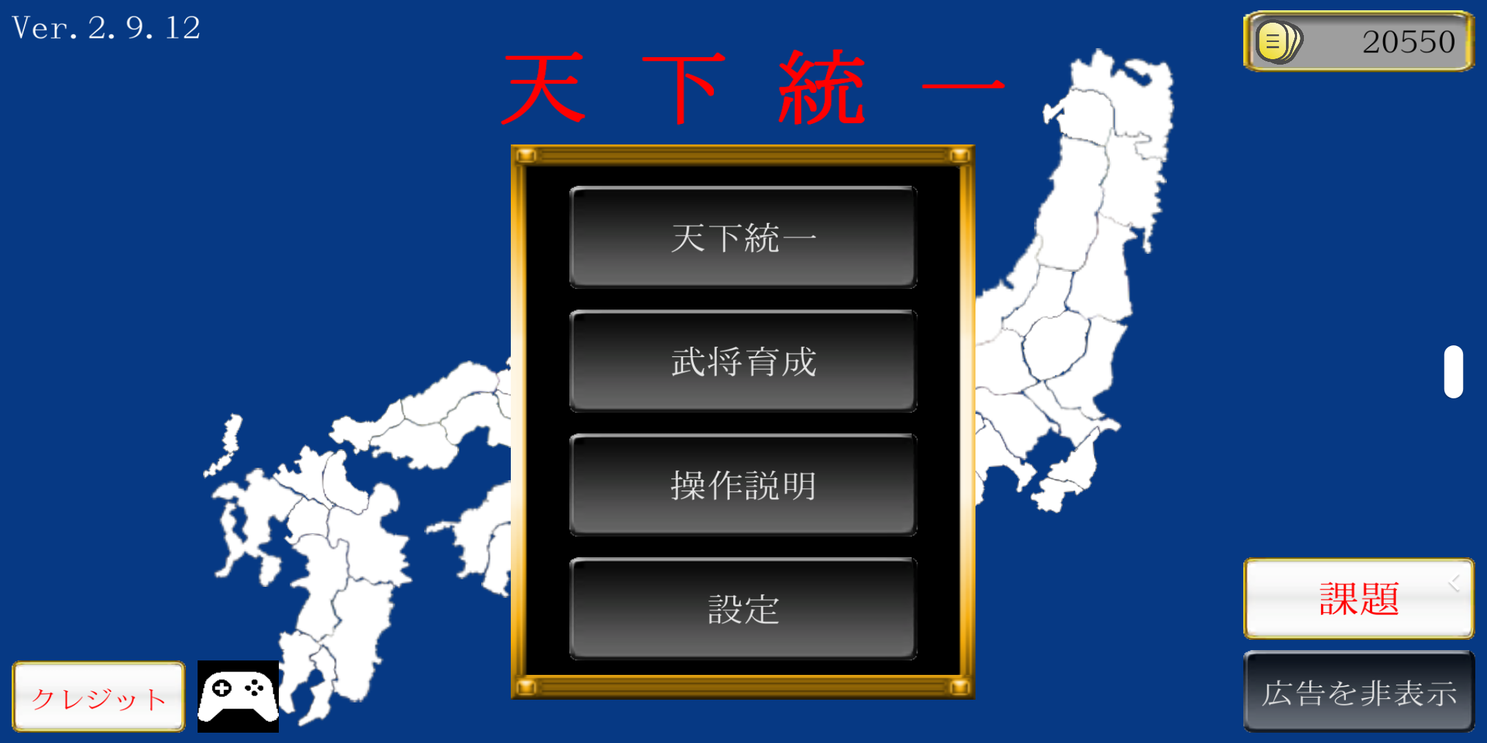 ◆天下統一 - シンプル戦国SLG◆ 戦国大名を育成、操作して天下統一を目指す戦略シミュレーション! br◆天下統一 - シンプル戦国SLG◆ 戦国大名を育成、操作して天下統一を目指すシンプル戦国シミュレーション! br【ゲーム紹介】 ゲーム内には織田信長や武田信玄などといった有名戦国大名を操作して天下統一を目指す「天下統一モード」と自分だけのオリジナル武将を育成する「武将育成モード」の二つがあり、自分で育成した武将で歴代の名将たちと戦うことも可能。 育成を極めて信長打倒をするも良し、信長になりきって果たせなかった天下統一をするも良し。楽しみ方は様々。 br【豊富なシナリオ】 天下統一モードで50以上のシナリオ、武将育成モードで7家のシナリオを収録! 今後の追加実装もあり。 br【こんな方にオススメ】 ・歴史ゲーム、特に戦国ゲームが好き ・シミュレーションやストラテジーといったジャンルのゲームが好き ・自分の育てた武将で戦国の乱世を戦ってみたい方 ・じっくりと腰を据えて戦国ゲームをプレイしたい方 ・オフラインでも遊べるゲームをお探しの方 br【アプリ価格】 全プレイ無料 br【お問い合わせはコチラ】 ※返信を必要とする内容の場合には、予め迷惑メールの受信拒否設定の確認を行って下さい。迷惑メールの受信拒否設定を行っていますと、返信のメールが届かなくなります。 brGoogle playから引用 |